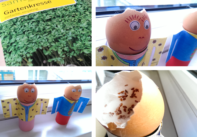 Wenn Sie Konrad und Brigitte dann in die Sonne stellen und sie täglich mit einigen Tropfen Wasser gießen, werden bei den beiden die Kressehaare bald nur so sprießen.